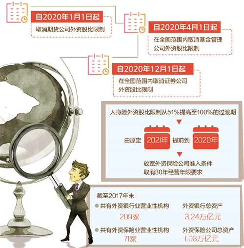 除此之外,涉及金融开放时点变化的还包括“人身险外资股比限制从51%提高至100%的过渡期,由原定2021年提前到2020年”“放宽外资保险公司准入条件,取消30年经营年限要求”。据悉,目前外国保险公司来华设立外资保险公司需满足经营保险业务30年以上的要求。银保监会表示,近年来,随着对外开放的深化,大部分入榜《财富》世界500强的外国保险公司都已进入中国,在中国保险市场发挥了积极作用。取消30年经营年限要求,为具有经营特色和专长但经营年限不足的外国保险公司来华创造了条件。