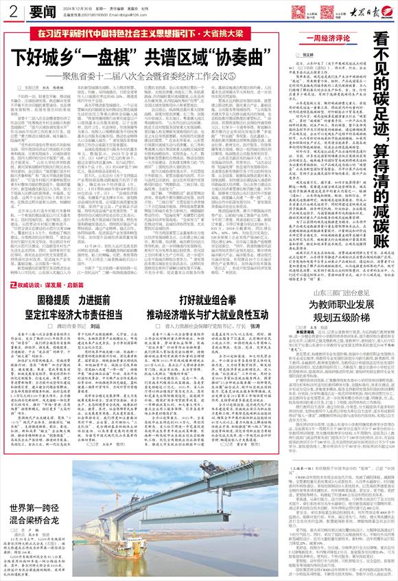 “受外部环境变化带来的不利影响加深,明年我国经济运行将面临不少困难和挑战。只有实现城乡、区域协调发展,国内大循环的空间才能更广阔、成色才能更足。”山东大学经济学院教授、黄河国家战略研究院执行院长余东华注意到,会议提出“高质量打造乡村振兴齐鲁样板”和“高水平推进新型城镇化”,“打造乡村振兴齐鲁样板要注重乡村整体功能的塑造提升,强调质量兴村;新型城镇化新在以人为本,致力于提高人民群众的获得感、幸福感、安全感。这两个方面在目标上具有互补性,在推进过程中富有互动性,相辅相成。”