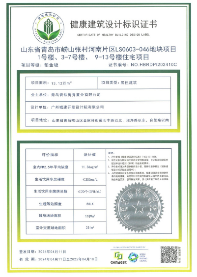不仅如此,基于人本与健康的全方位考量,和樾府重塑建筑标准,以卓越品质成为青岛首个荣获“健康建筑设计标识铂金级”认证的住宅项目,达到“绿建三星”满格标准,为业主带来更节能、更舒适、更智能的生活方式。