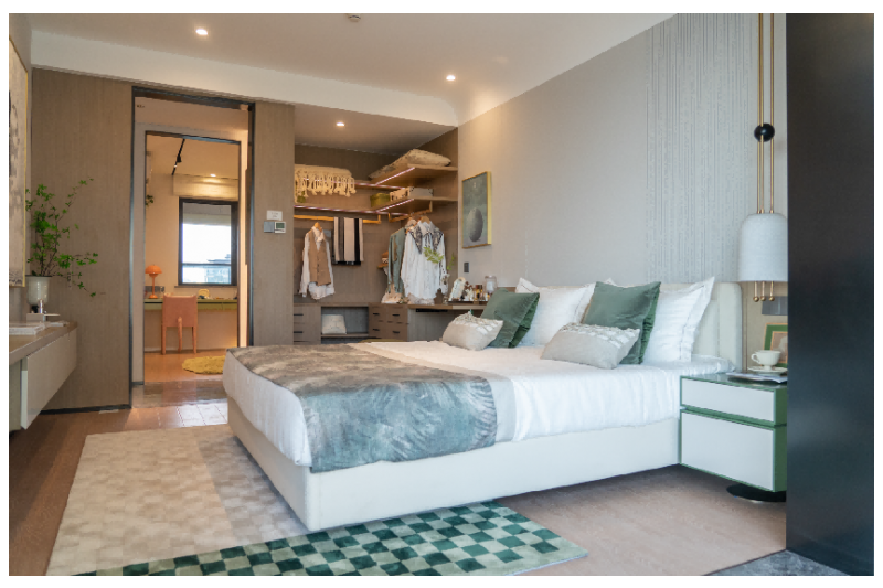 主卧面积14m² ,配置步入式衣帽间 ,南侧大阳台设计 ,躺在床上享受海景