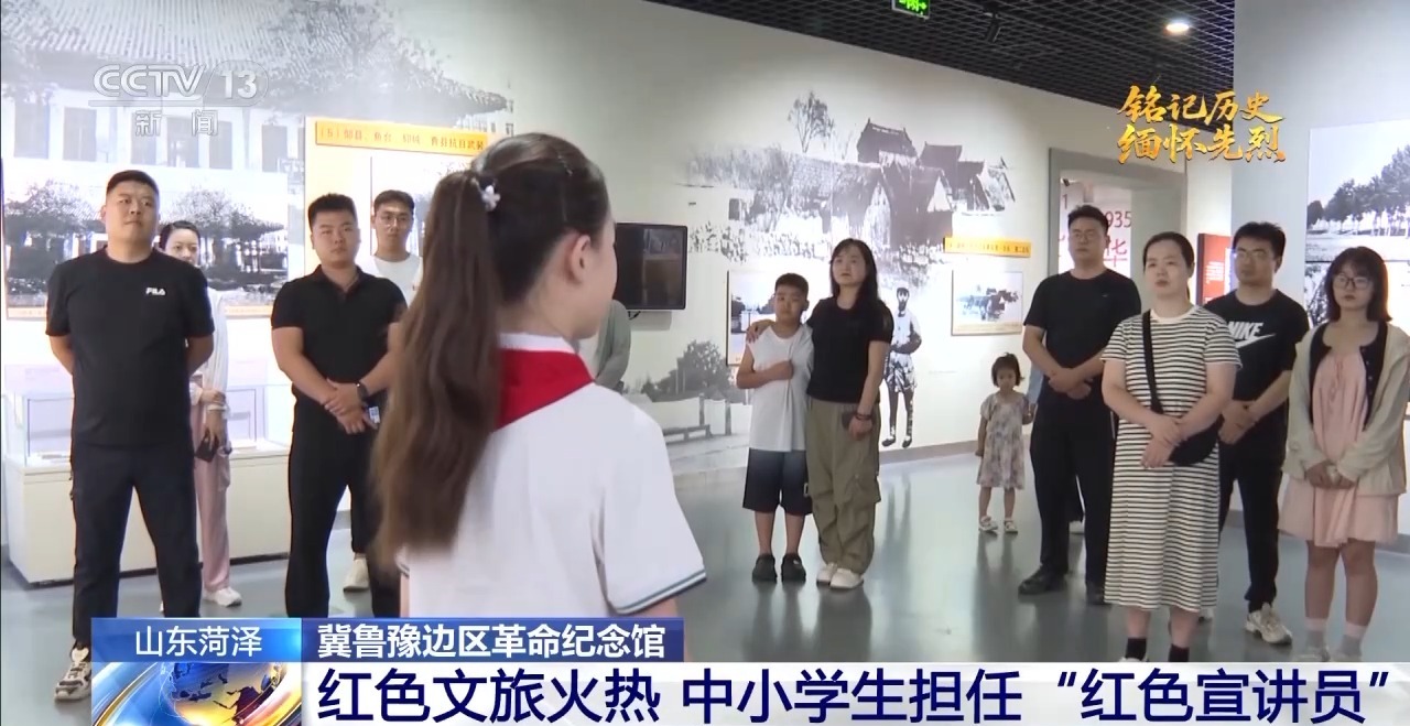 正值暑假,这里的红色文旅十分火热。据统计,2024年,冀鲁豫边区革命纪念馆全年共接待游客超86万人次,开展红色教育活动覆盖中小学生5万多人次。菏泽市委讲师团利用暑假时间,培训中小学生担任“红色宣讲员”,可以让孩子们在讲述革命历史的同时,潜移默化接受红色教育。