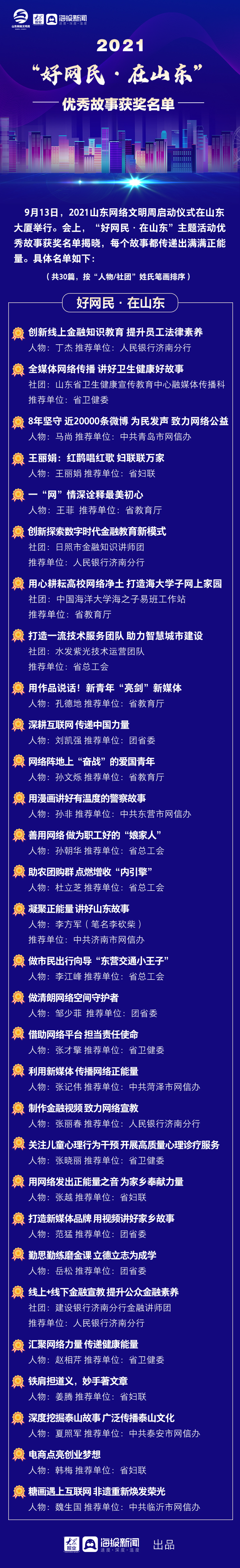 长图丨满满正能量!“好网民·在山东”主题活动优秀故事获奖名单揭晓