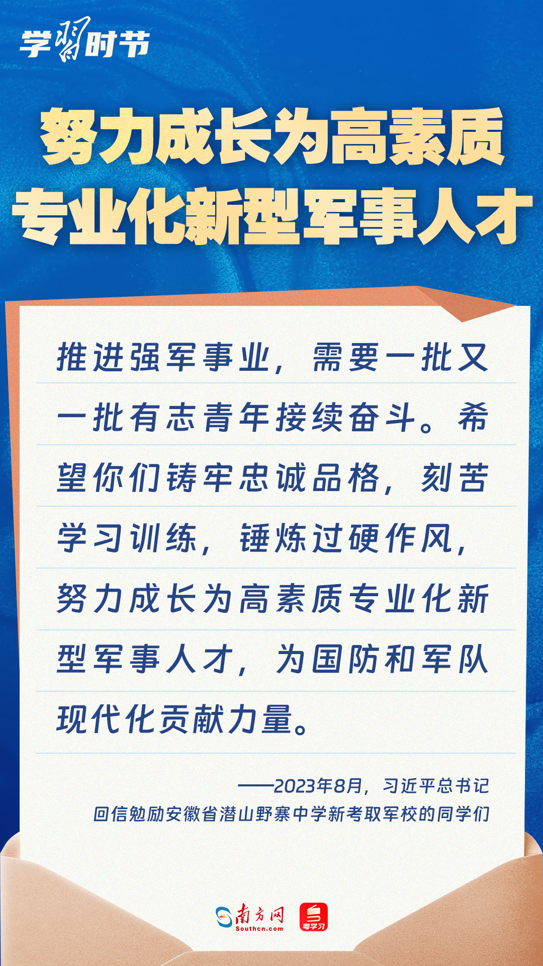 强国必须强军,军强才能国安。党的十八大以来,习近平总书记始终牵挂一线官兵冷暖,高度重视我军院校教育和人才培养工作,多次给部队官兵、军校学员等回信。让我们一起重温总书记的谆谆寄语!