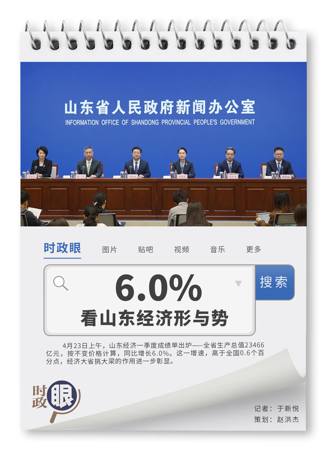 4月23日上午,山东经济一季度成绩单出炉——全省生产总值23466亿元,按不变价格计算,同比增长6.0%。这一增速,高于全国0.6个百分点,经济大省挑大梁的作用进一步彰显。