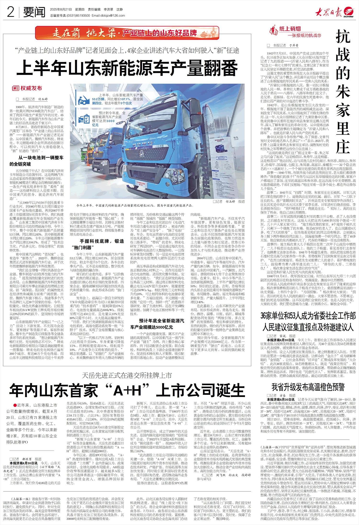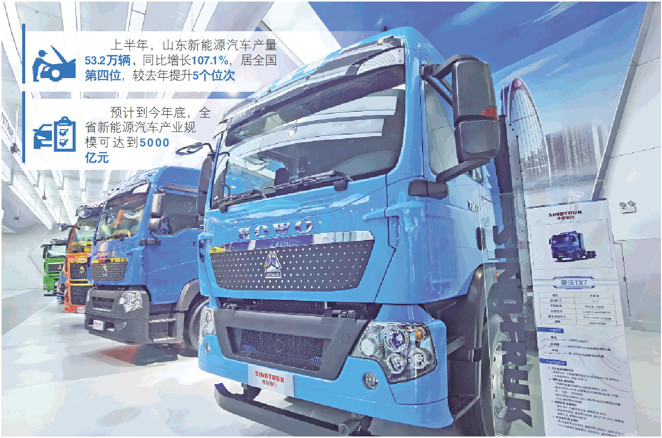 预计到今年底,全省新能源汽车产业规模可达到5000亿元。作为第一辆重型汽车“驶出”的地方,山东正写下更多从无到有、从弱到强的蜕变故事。