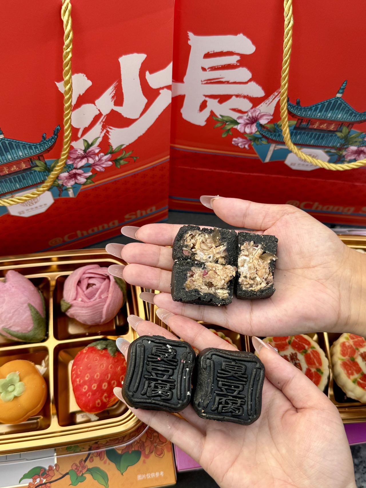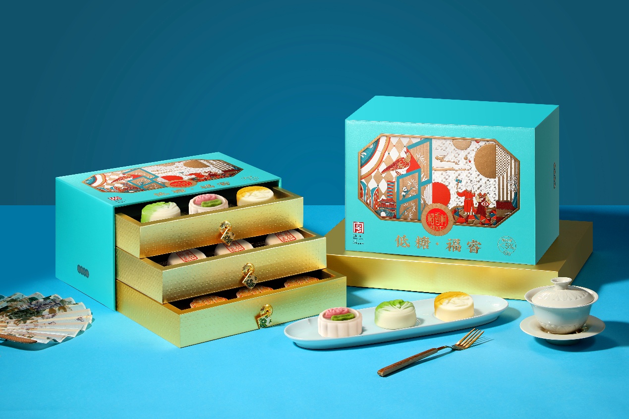 在文化呈现上,升级月饼礼盒设计:“国潮画意”系列将苏州观前街原址店、虎丘塔、平江路等文化元素融入包装,让礼盒成为“可带走的苏州文化”;此前推出的“伍仁臭豆腐饼”,则将长沙名小吃与传统伍仁馅料结合,以健康糕点形态成为当地特色伴手礼,让健康月饼兼具地域文化属性。