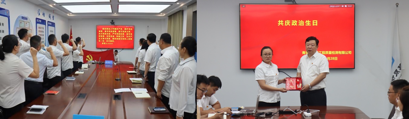 活动期间,全体党员重温入党誓词并举行共庆政治生日活动,海陆通检测公司党支部书记、总经理何长龙为过政治生日党员职工颁发纪念品,体现党组织对党员职工的关怀。