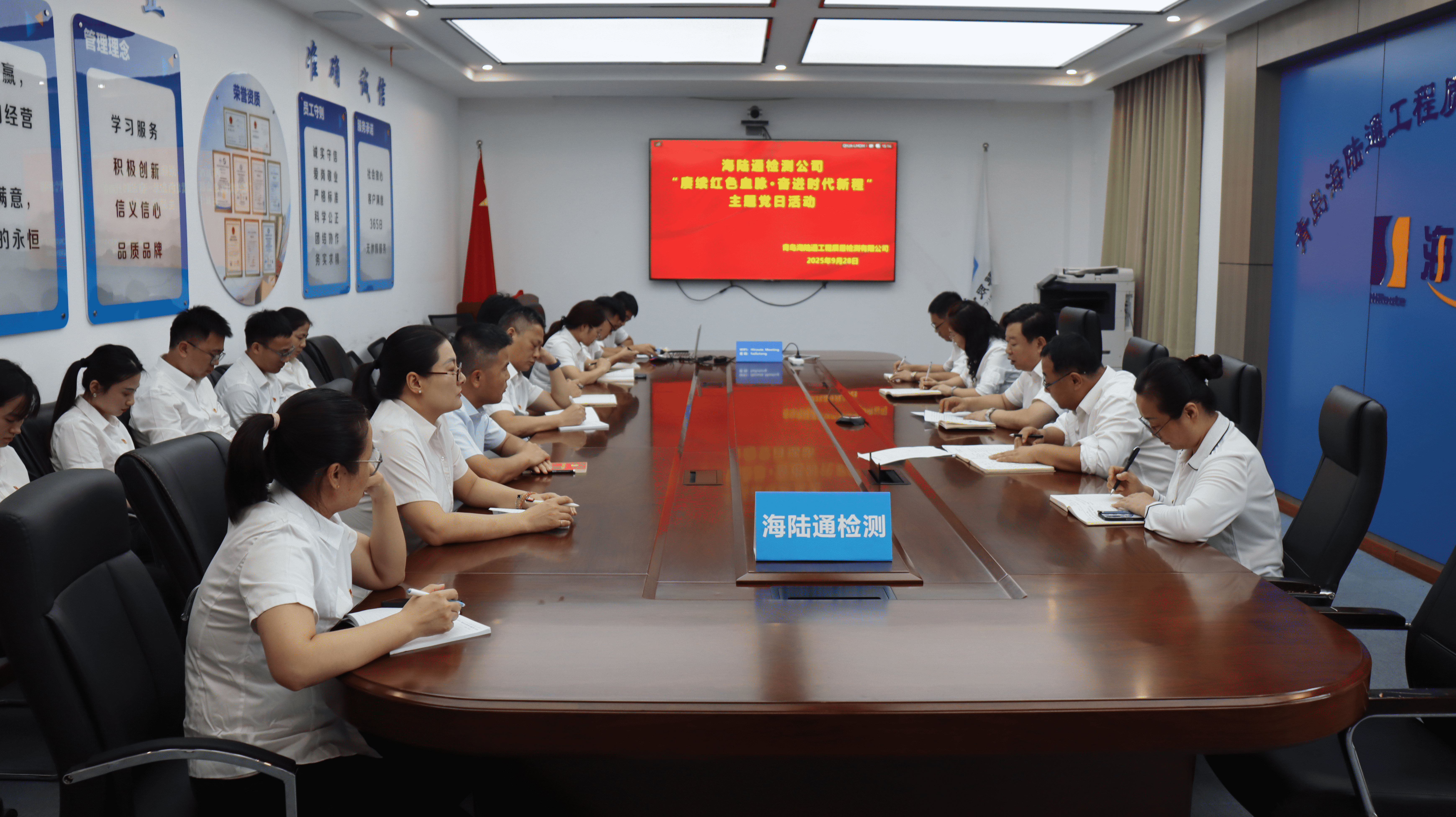 9月28日,海陆通检测公司举行“赓续红色血脉·奋进时代新程”主题党日活动,海陆通检测公司领导班子成员、驻青党员职工现场参加活动,即墨二地址及工地试验室部分党员职工线上参加。