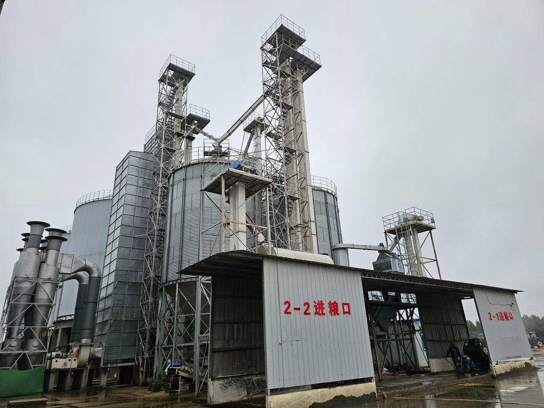 鲁望公司有13台循环式烘干机和2座连续式烘干塔。“循环式就是烘完这一批,排空后再进行下一批作业,日烘干能力约400吨;连续式的特点是这边源源不断地进,那边源源不断地出,日烘干能力为600吨。目前我们日烘干能力约为2000亩地的产量。”何石宝说。