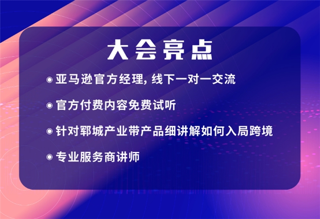 本次大会由郓城省级广告产业园主办,菏泽紫熙创城跨境电商产业园承办,并获亚马逊全球开店全程支持,定于 10 月 17 日 13:30 至 17:00 在菏泽紫熙创城跨境电商产业园三楼多功能厅举行。