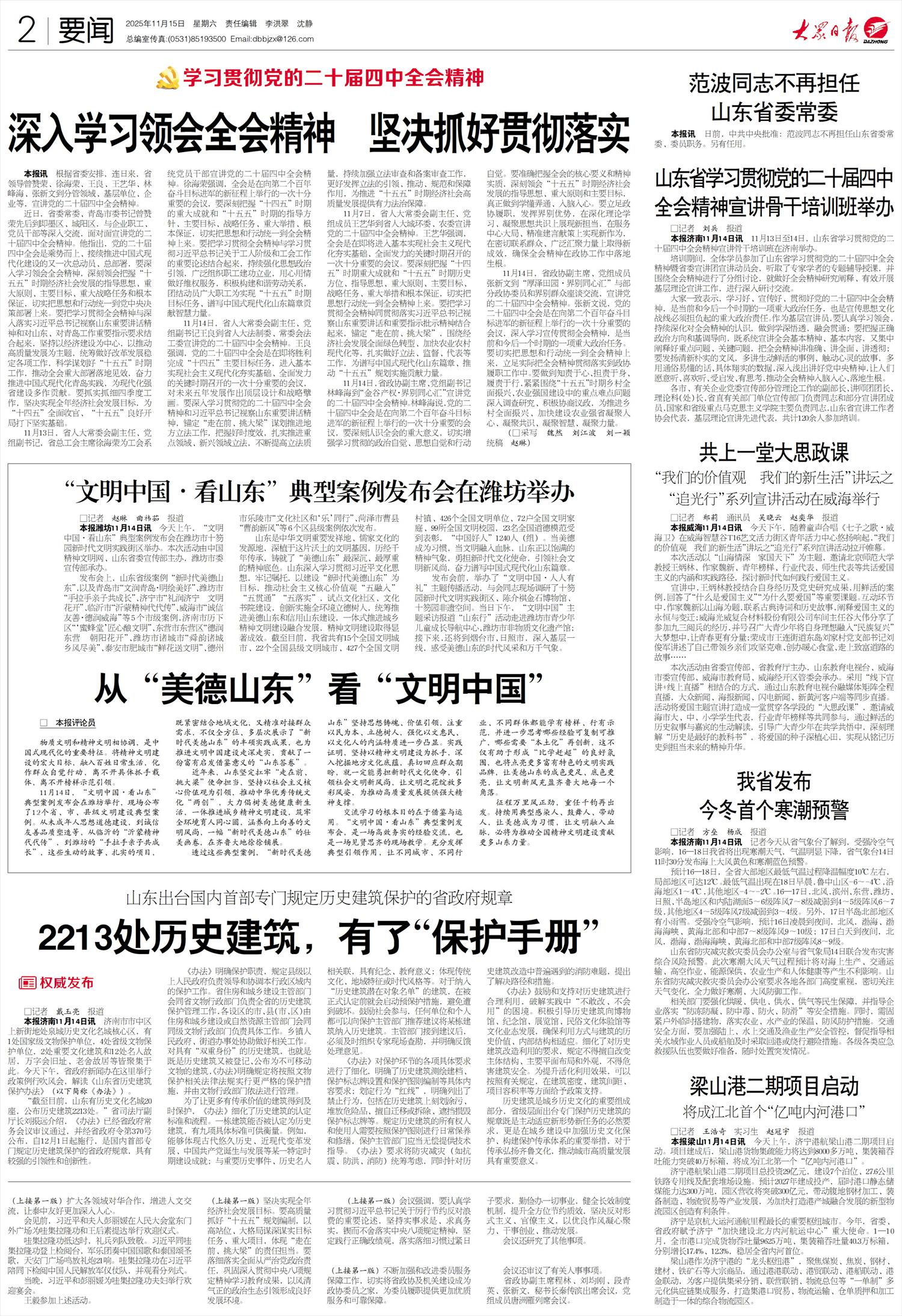 征程万里风正劲,重任千钧再出发。持续用典型感染人、鼓舞人、带动人,让美德成为习惯,让文明融入血脉,必将为推动全国精神文明建设贡献更多山东力量。