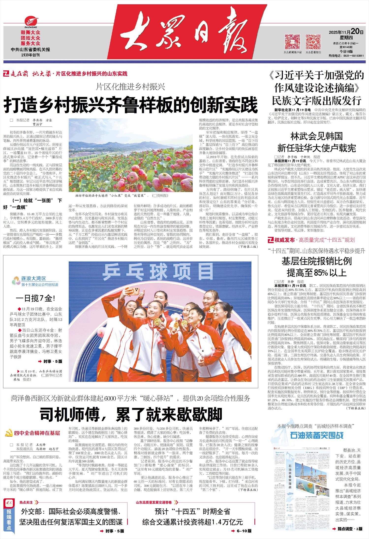而这些生动的一线实践,正与国家层面的战略擘画同频共振。在不久前闭幕的党的二十届四中全会上,“分类有序、片区化推进乡村振兴”被正式写入“十五五”规划建议。牢记习近平总书记谆谆嘱托,山东聚焦打造乡村振兴齐鲁样板的创新探索,为这一国家方略提供了来自实践最前沿的坚实注脚。