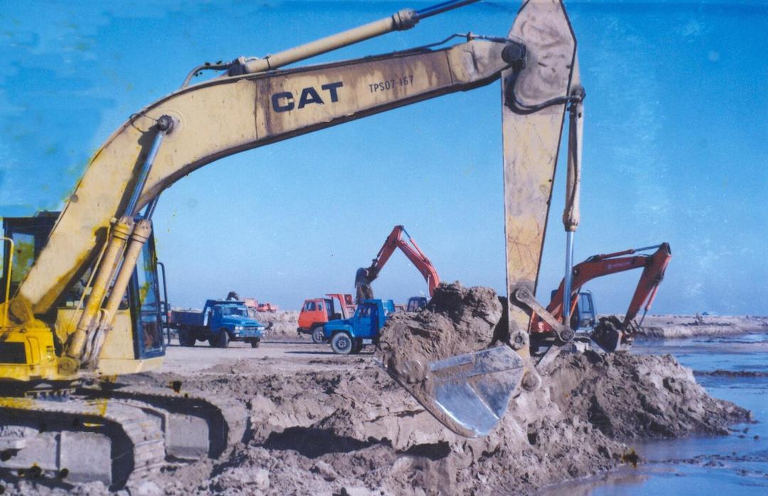 1997年11月黄河口挖河固堤在利津崔庄控导启动(黄河河口管理局提供)