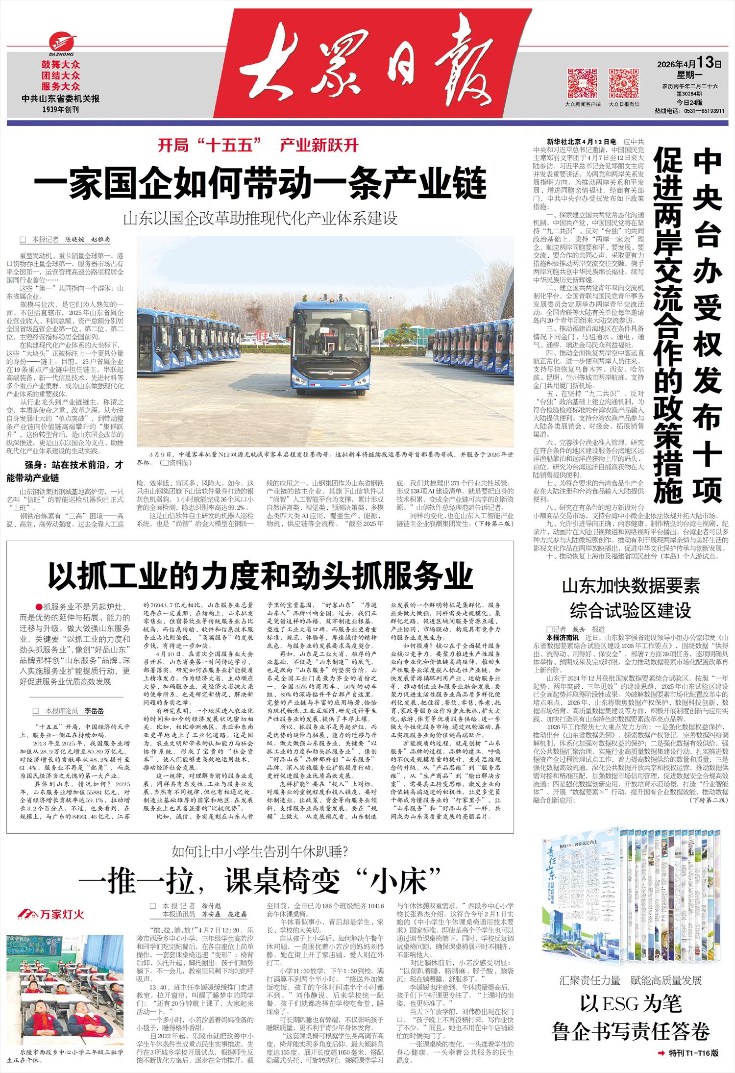 再如,山东是工业大省,雄厚的产业基础,不仅是“山东制造”的底气,也是跃向“山东服务”的坚实台阶。山东是全国工业门类最为齐全的省份之一,全国35%的商用车、50%的动车组、80%的深海钻井平台都产自这里。完整的产业链与丰富的应用场景,恰恰为现代物流、工业互联网、研发设计等生产性服务业的发展,提供了丰厚土壤。