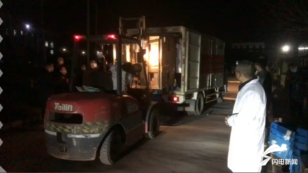 2月4日下午,在东营市垦利区瑞翔家禽养殖有限公司的厂区里,工人师傅正在将7吨、113400枚鸡蛋装车,这些鸡蛋2月5日从济南出发,发往武汉和黄冈,为湖北战“疫”加油。