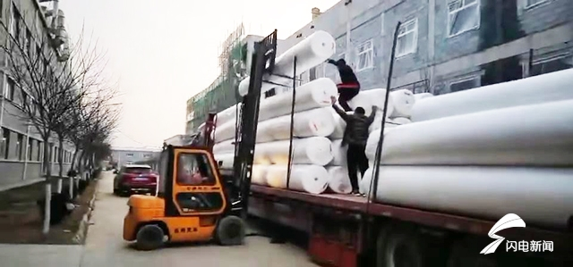1月25日,大年初一当天,德州市临邑县天鼎丰非织造布有限公司接到了“火神山”医院的材料订单。公司第一时间成立紧急工作小组,数十名本地工人放弃假期,将在仓库中存放的土工布整理、装车,当天晚间就将第一批16万平方米土工布装车发往湖北武汉,用于医院防水防渗工程建设。