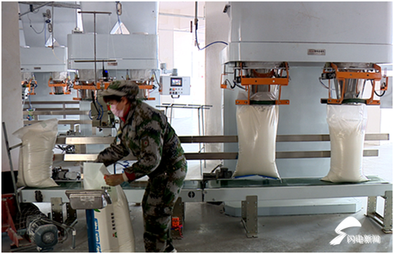 夏津县邦基玖瑞农牧有限公司已开工生产,20名工人返岗到位,自动化生产线开足马力,一袋袋饲料正在打包装车出厂。