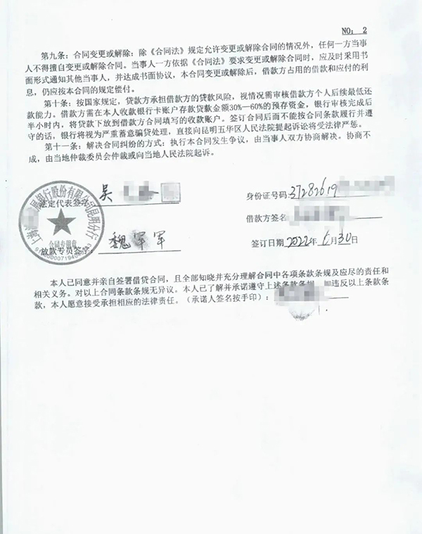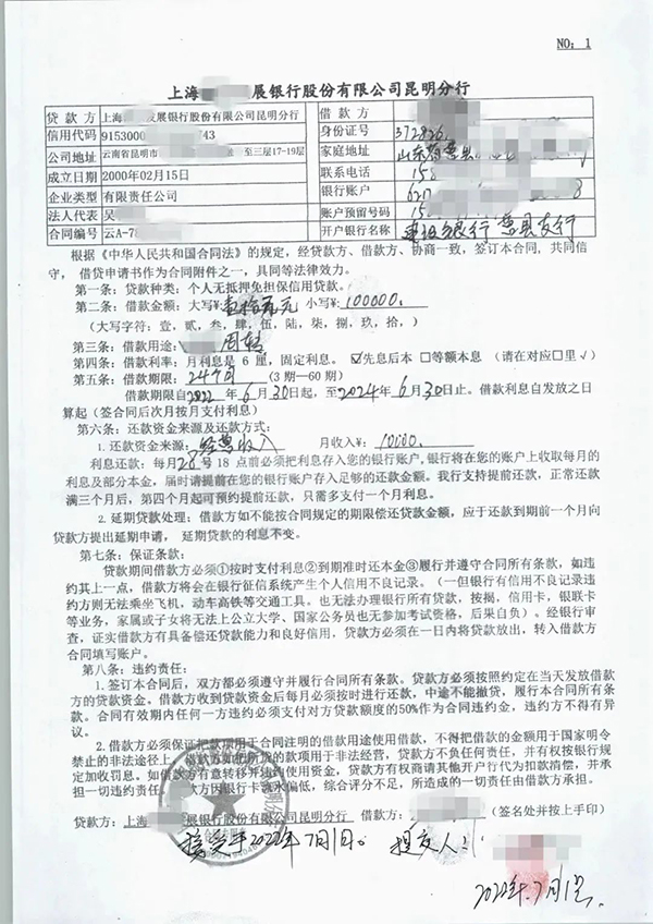 在“小魏”的贴心询问下,刘先生说,自己需要贷款10万元。很快,“小魏”发过来了“上海某某发展银行股份有限公司昆明分行”的合同文本电子版,让刘先生打印填写。