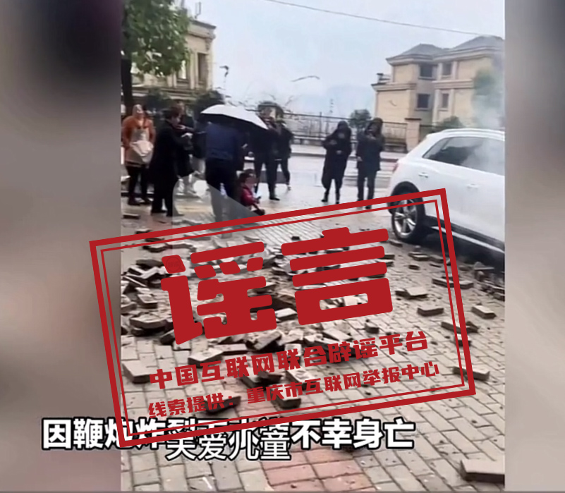 经相关部门核实,1月21日15时42分,重庆市万州区陈家坝街道南滨上院小区居民黄某(男,9岁)与两名玩伴(均未受伤)在小区门前空地玩耍时,将点燃的鞭炮丢入地面一下水道内,引燃沼气掀翻井盖,造成黄某头部受伤及旁边停放的一辆白色小轿车受损。随后,黄某被送医治疗,已无生命危险。网传“万州一女童向污水道投掷鞭炮发生爆炸致一人死亡”信息为不实信息,目前,该视频已删除。(来源:“重庆辟谣”微信公众号)