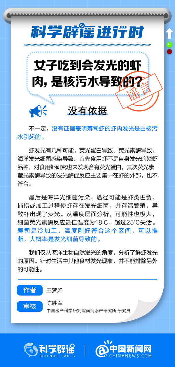 女子吃到会发光的虾肉,是核污水导致的?