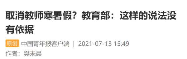 2021年,社会上有“要取消教师寒暑假”的说法,当时教育部回应称“这样的说法是没有依据的。”