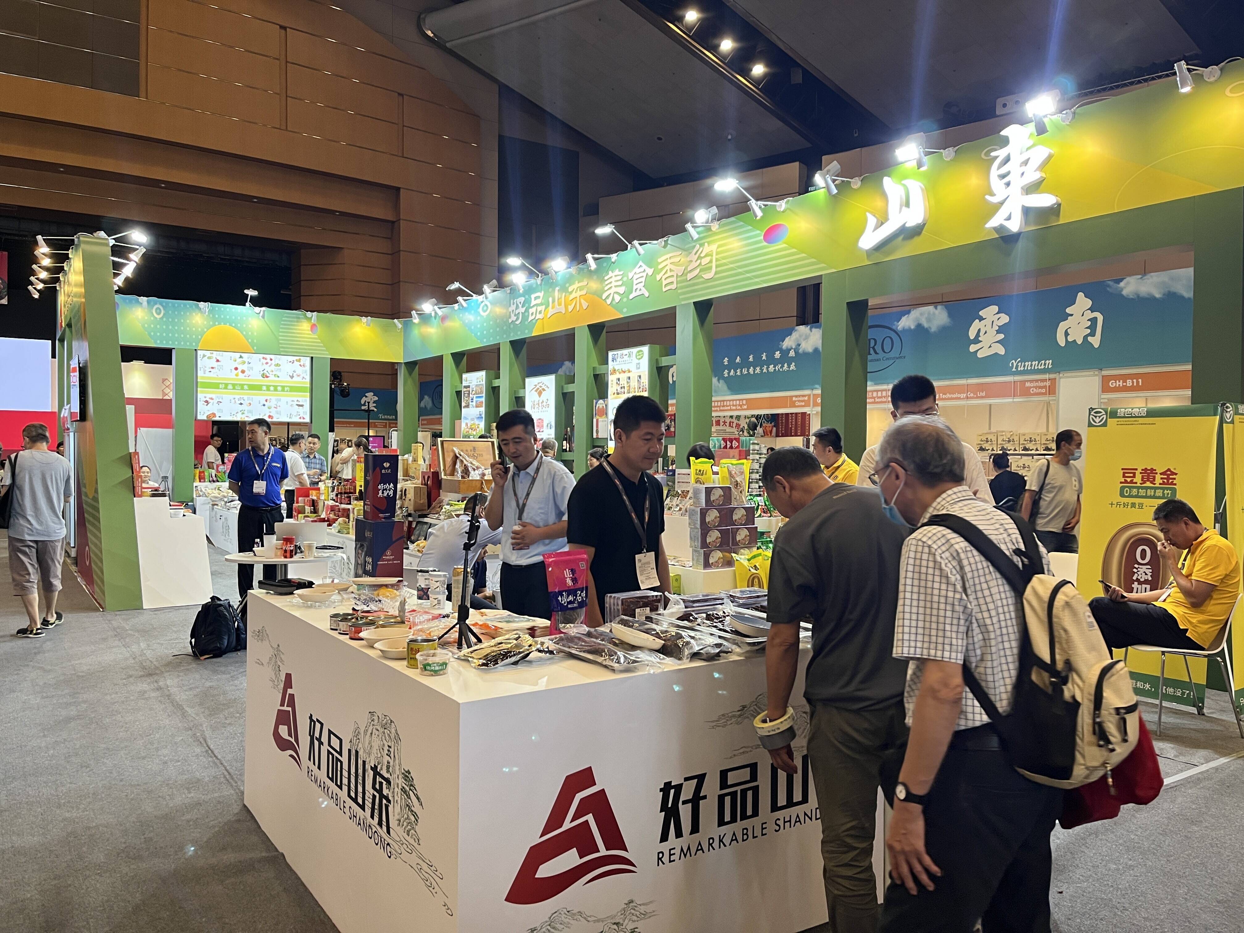 本届博览会,山东以“好品山东”为主题参展,展区面积96平方米,共有130多家企业的330多种产品参展,产品主要涵盖地理标志产品、山东茶、预制菜、生鲜果蔬等,是参展企业和参展品类最多的展团之一。