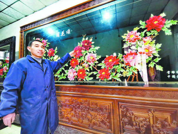 “在整个雕刻环节,考验艺人的手眼心的协调配合,想要牡丹栩栩如生,需要拿捏好雕刻力度。”赵公峰告诉记者,只有掌握娴熟的雕刻刀法,才能做到雕刻出来的牡丹层次分明,凹凸有致,具有立体感,恰到好处地体现出牡丹的艳丽华贵。