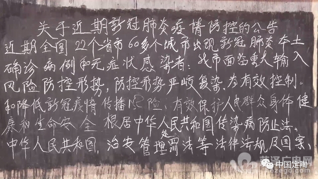 一大早,李永祥和李景新两位老人就开始在家门口的黑板前忙碌起来,张罗着新一天的板报内容和往常一样,两位老人还是分工合作,一个负责念 一个负责写,因老人不会使用智能手机,抄写的内容大都是从报纸上摘抄或是从村两委和孩子们那里搜集来的。