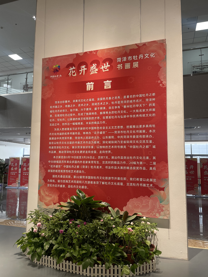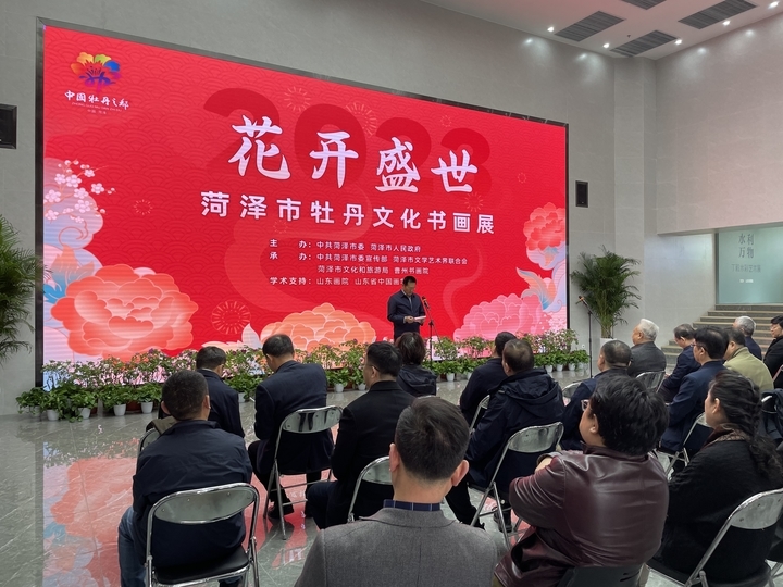 翰墨飘香歌盛世,丹青亮彩写华章。3月19日,“花开盛世”菏泽市牡丹文化书画展在山东画院美术馆隆重开幕。菏泽牡丹文化书画展既是牡丹节会预热的一项重要活动,也是加强城际文化交流互鉴的重要载体,同时也为全省广大书画爱好者和济南市民朋友献上一道丰盛的牡丹文化大餐。