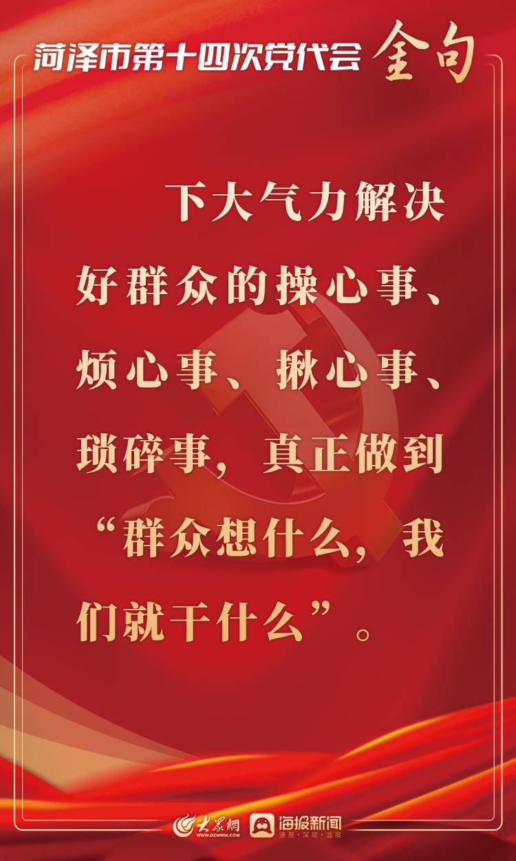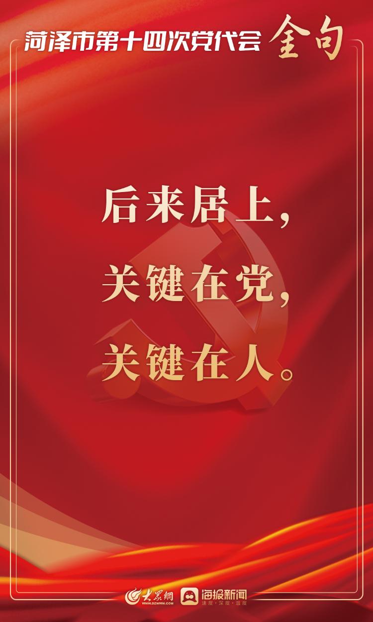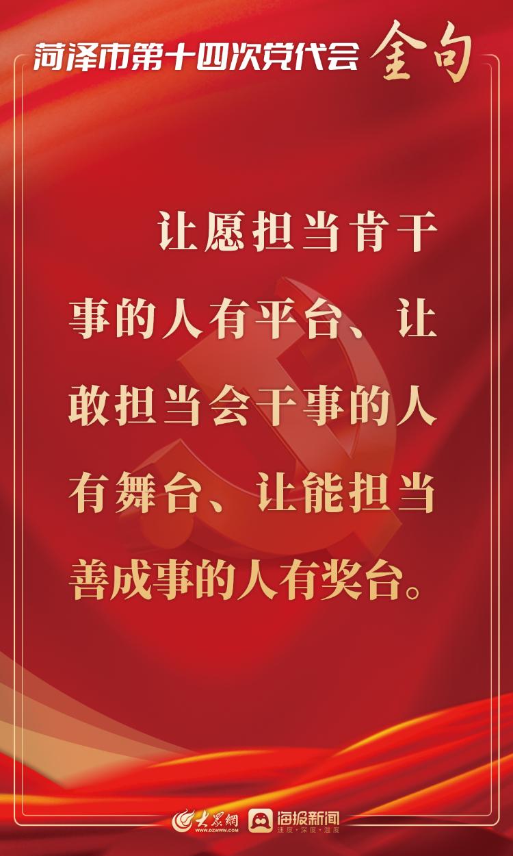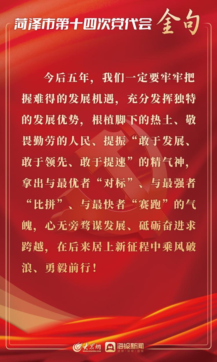 2月17日上午,中国共产党菏泽市第十四次代表大会开幕。市委书记张新文代表中国共产党菏泽市第十三届委员会向大会作题为《牢记嘱托 勇担使命 奋力谱写后来居上崭新篇章》的报告。大众网·海报新闻梳理了报告中的“金句”。