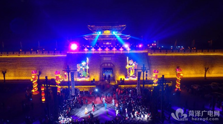 菏泽广电网讯 2月2日,水浒好汉城举办的郓城县第十届好汉观灯贺年会亮灯仪式在景区南门城墙下隆重举行。