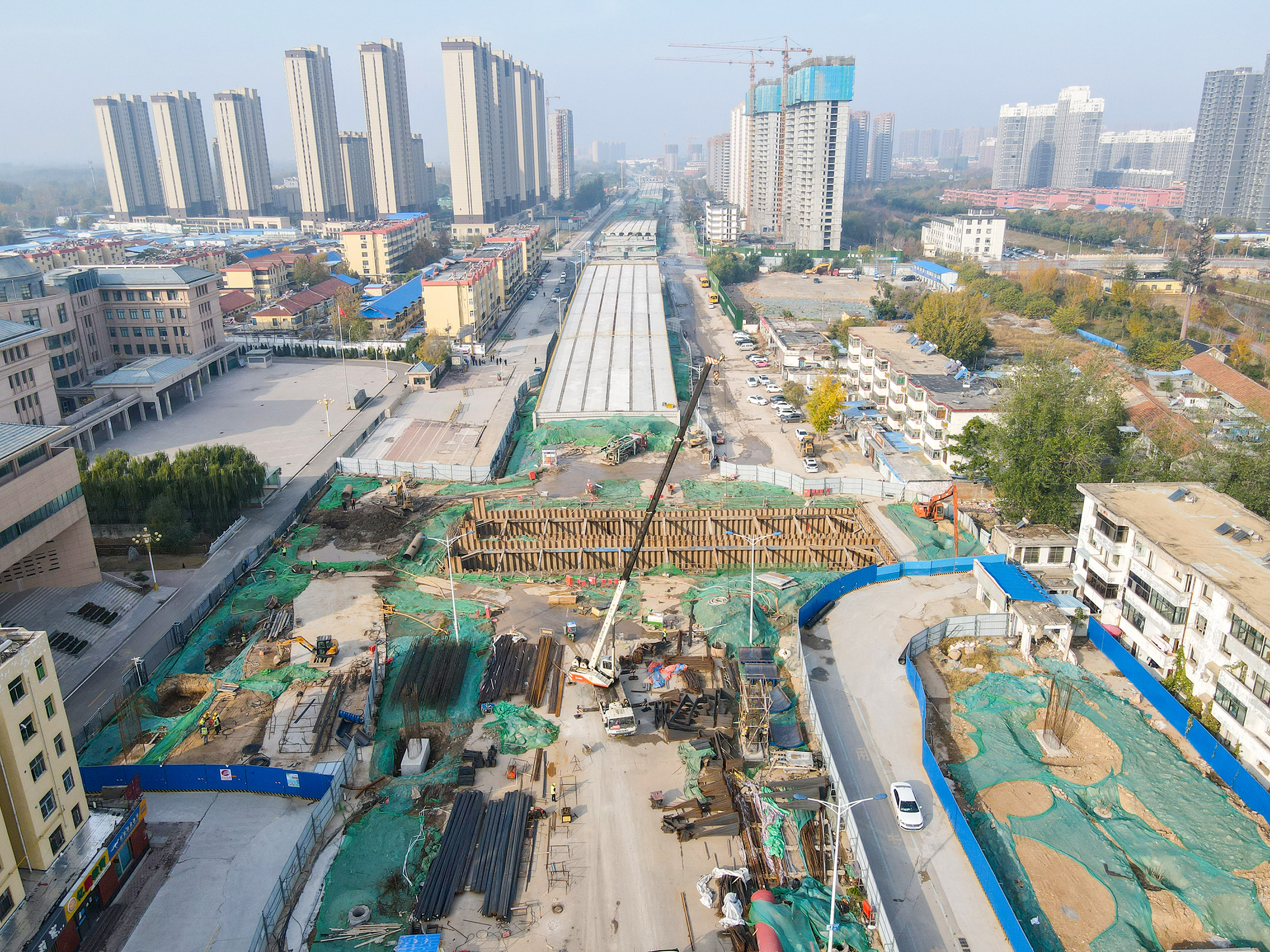 11月17日,记者在长江路快速通道工程(解放路至西安路段)施工现场看到,工人们佩戴口罩,进入场地自觉扫“场所码”,经实名认证通道刷脸通过闸机进入工地,伴随着工人忙碌的身影和机械的轰鸣声,项目施工现场一派忙碌景象。