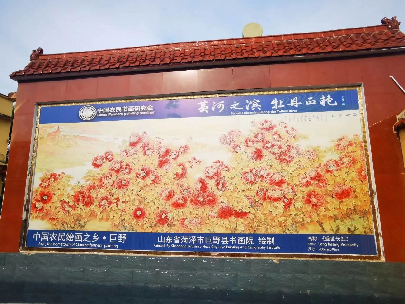 巨野县书画院院长程军伟介绍,《盛世长虹》宽540cm、高200cm,由巨野县书画院组织画家历时52天创作而成。该作品以黄河文化、牡丹文化、红色文化为创作元素,黄河体现中华民族无坚不摧、坚韧刚强的品格,牡丹寓意祖国繁荣昌盛、人民幸福美好,延河水映照出中国共产党人的初心使命,宝塔山象征着红色革命精神。