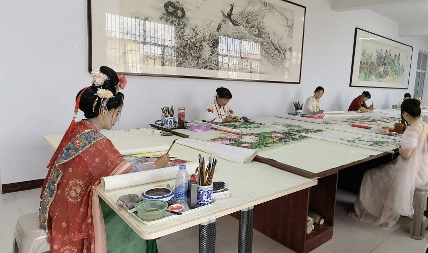 随着互联网行业的发展,直播平台也不断崛起。“和很多老一辈一样,我的父亲一开始也很抵触直播,但经过我不断地说服,特别是用实际行动来证明,他也慢慢接受了这一充满了时代气息的传播方式。”洪庙农民绘画专业合作社是较早接触直播行业的画院。现在,姚明月也会经常进直播间,主动与画友、藏友们进行对话,了解他们的诉求,向他们科普工笔画的历史与未来。