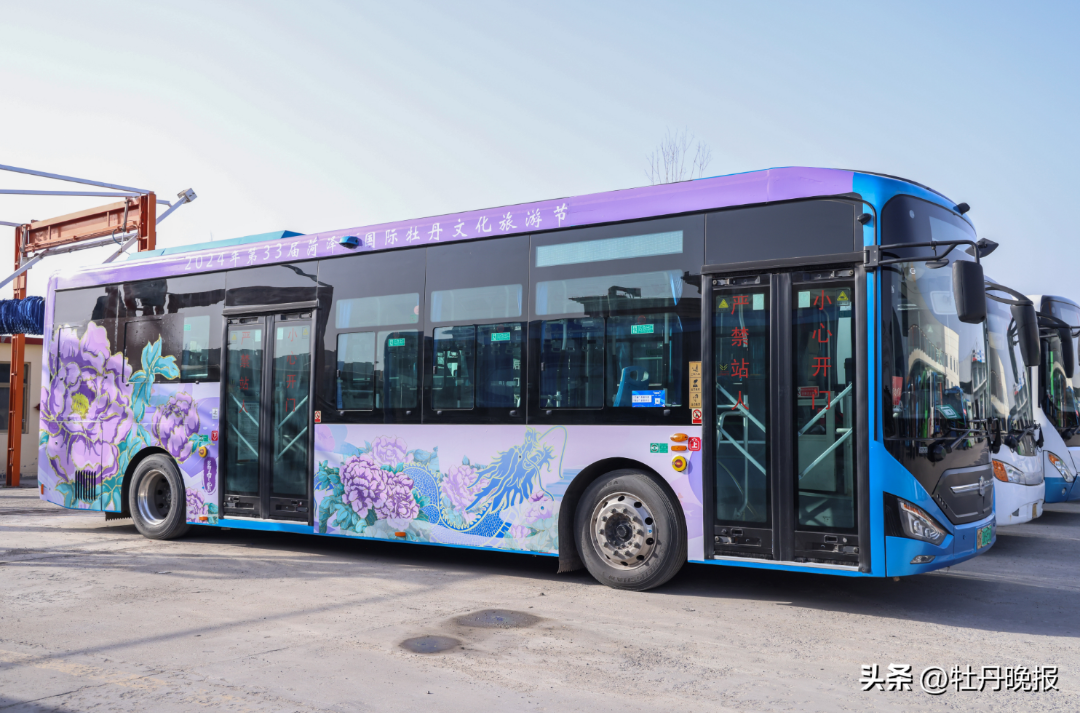 2024菏泽牡丹节会期间,菏泽公交集团将推出20辆牡丹主题公交车厢,其中首批装扮一新的公交车已经亮相菏泽街头。