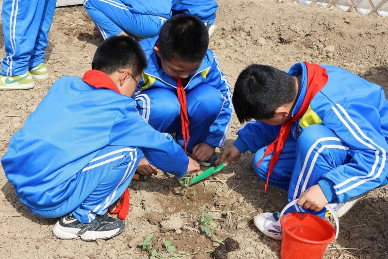 在老师的指导下,学生们还亲自动手,参与到瓜果的种植中,体验了农田劳作的辛勤和快乐。
