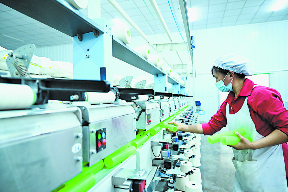 华源纺织有限公司车间内,工人正在生产线上忙碌