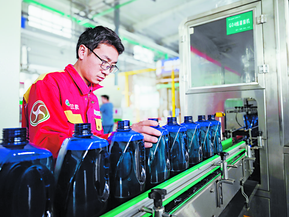 鄄城龙蟠科技车间内,工人正在加紧生产
