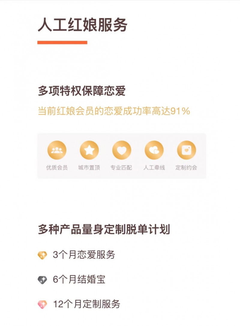 牵手App面向24-35岁的用户,打造了个性化的人工红娘服务,3个月恋爱服务、6个月结婚宝、12个月定制服务等多种产品量身定制“脱单计划”。在用户选择该服务后,专业红娘会进行一场长达一小时的深度沟通,不仅依据大数据分析,更深入了解用户的性格特质、恋爱观念及真实需求,从而为其量身定制最合适的对象推荐。