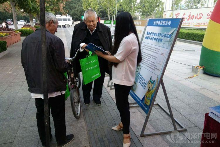 菏泽广电网讯 (记者 赵志博 王利田) 9月26日,2018无线电管理宣传月活动走进大剧院广场,向菏泽市民普及无线电管理知识。