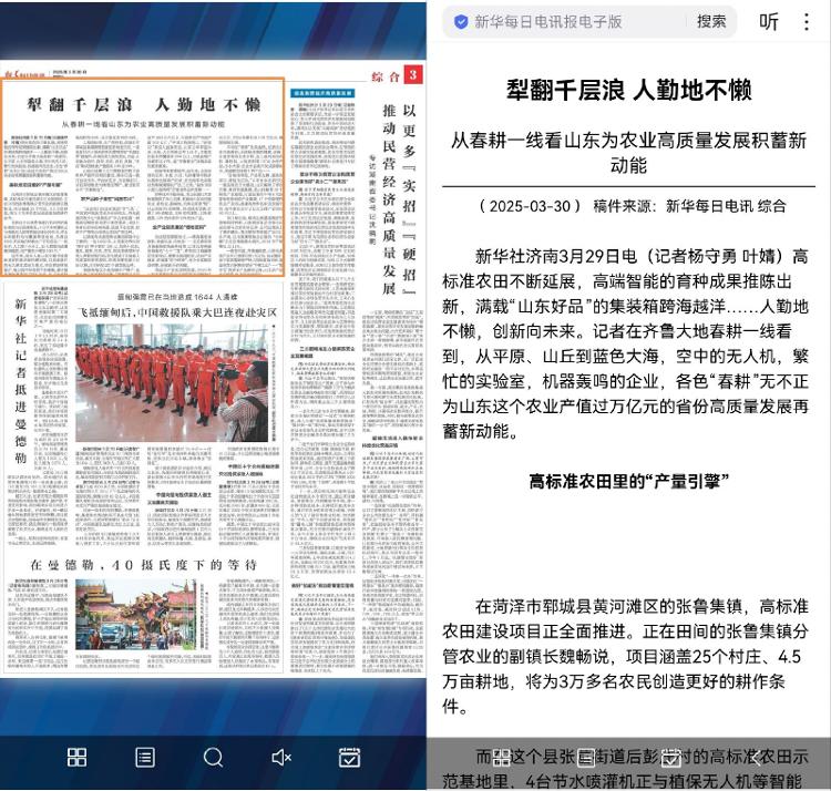 3月30日,新华每日电讯3版刊发《犁翻千层浪 人勤地不懒 从春耕一线看山东为农业高质量发展积蓄新动能》,报道郓城县高标准农田建设以及科技春管情况。
