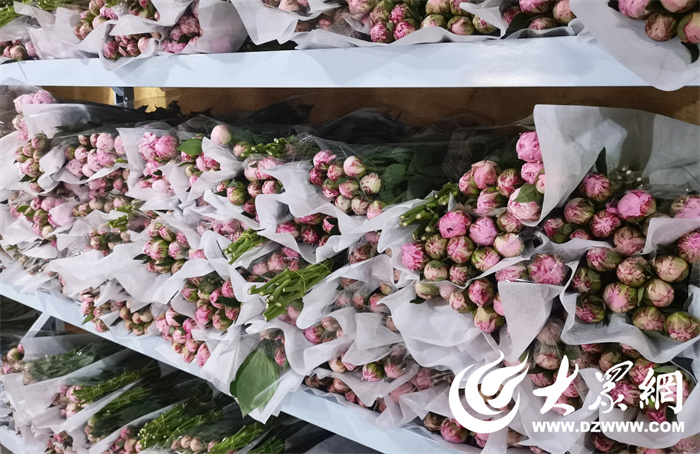 “我们每年的芍药鲜切花都是供不应求,从销售范围上来说,国内全覆盖,国外出口俄罗斯、澳大利亚、荷兰、迪拜、巴基斯坦等国家,去年,我们公司的总产值是4000万元以上,拥有全球最大的芍药鲜切花出货量。”赵文双说道,菏泽生产出的芍药花在市场上认可度非常高,被称为会“爆炸”的“山东大芍药”,原因是3厘米的花苞插入水中后,睡一觉的功夫就可以绽放出直径达20余厘米的大花朵,就像“爆炸”了一样。