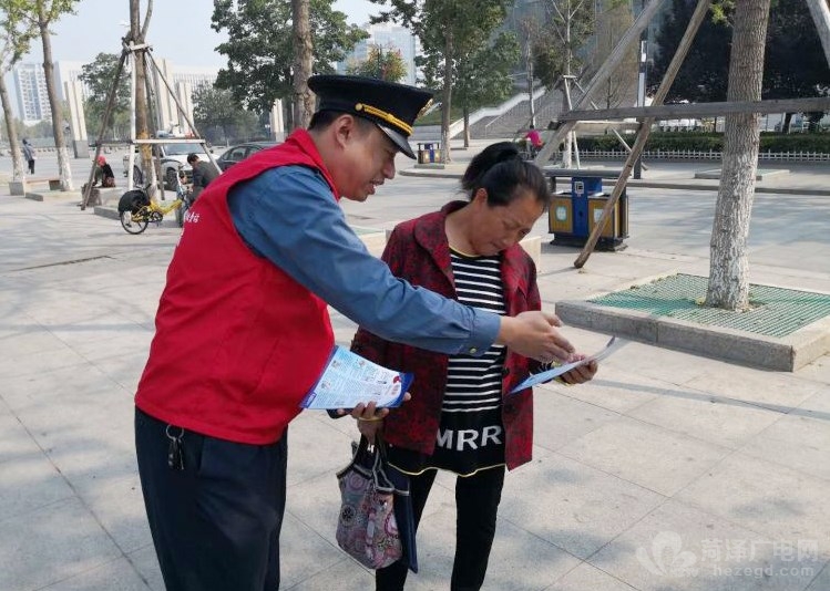 菏泽广电网讯 (记者:曾海燕) 9月27日,齐鲁交通发展集团菏泽分公司组织安全宣传教育志愿者队伍,到菏泽大剧院广场开展安全宣传活动。