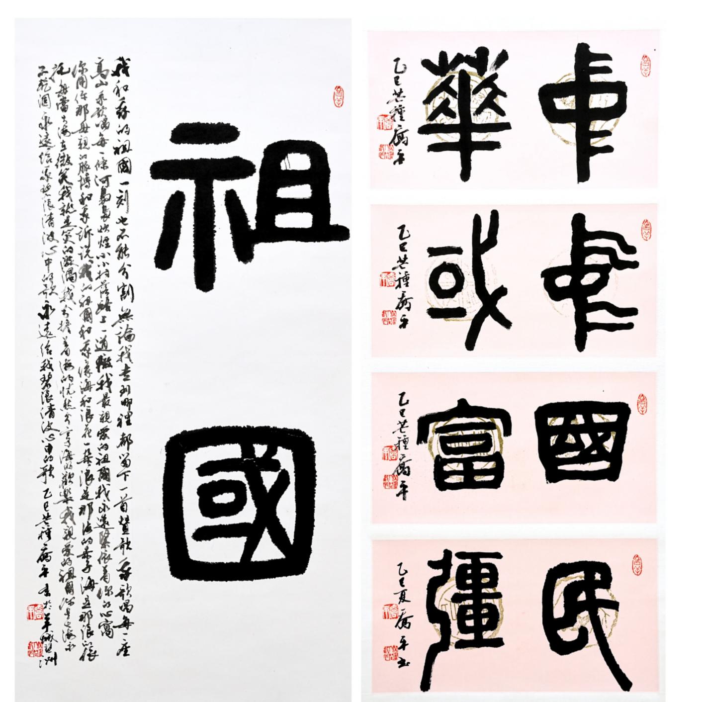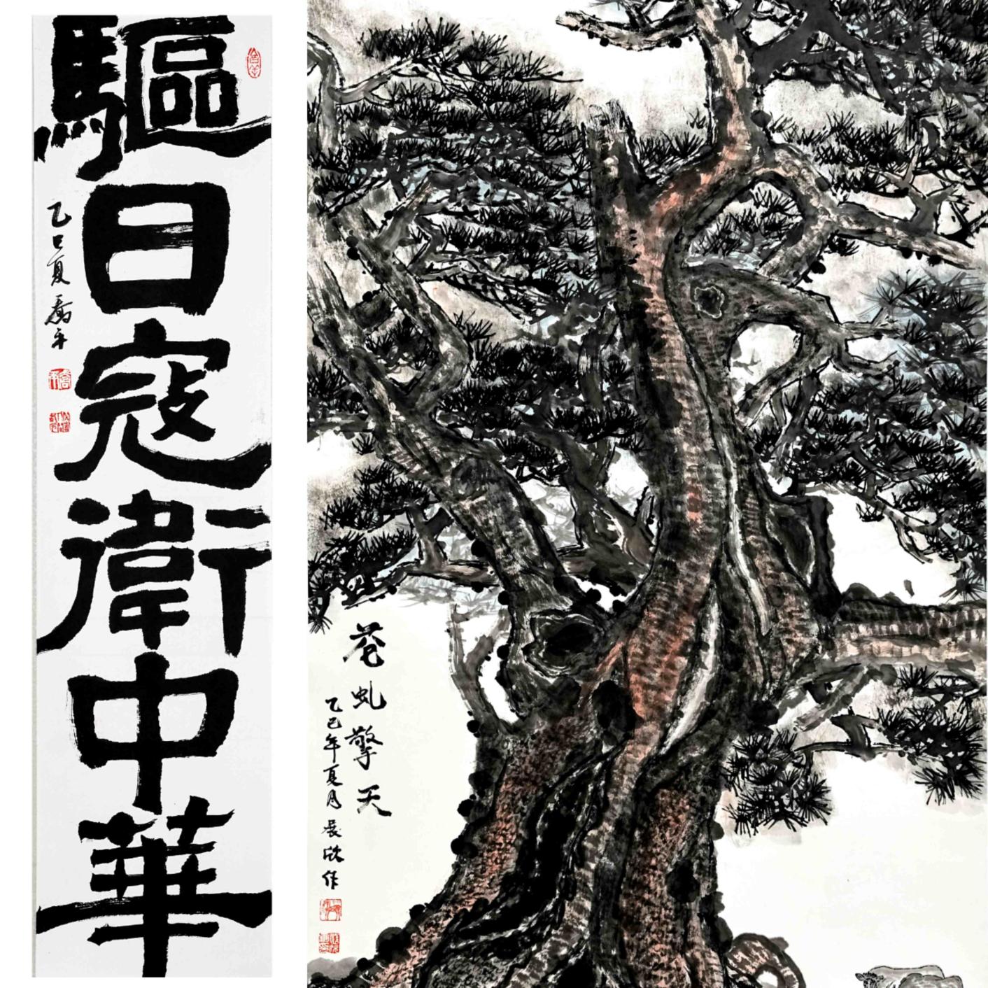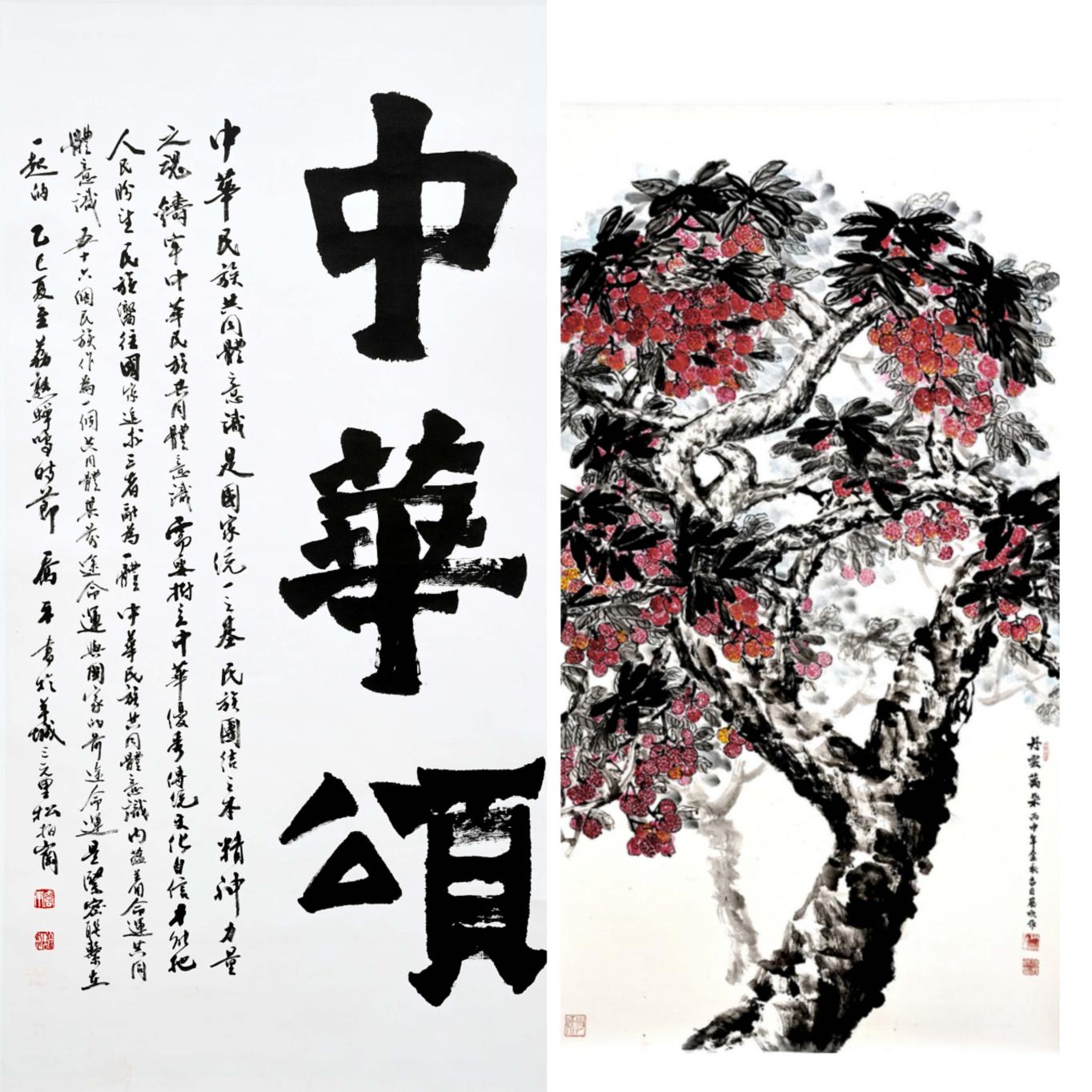 两位参展书画家,以不同的笔墨形式,共同围绕“颂中华”这一主题,挥斥方遒、狂施丹青,诉胸中快意、吐肺腑之声。这,不仅仅是他们当下的选择,更是他们人生不悔的终极追求。