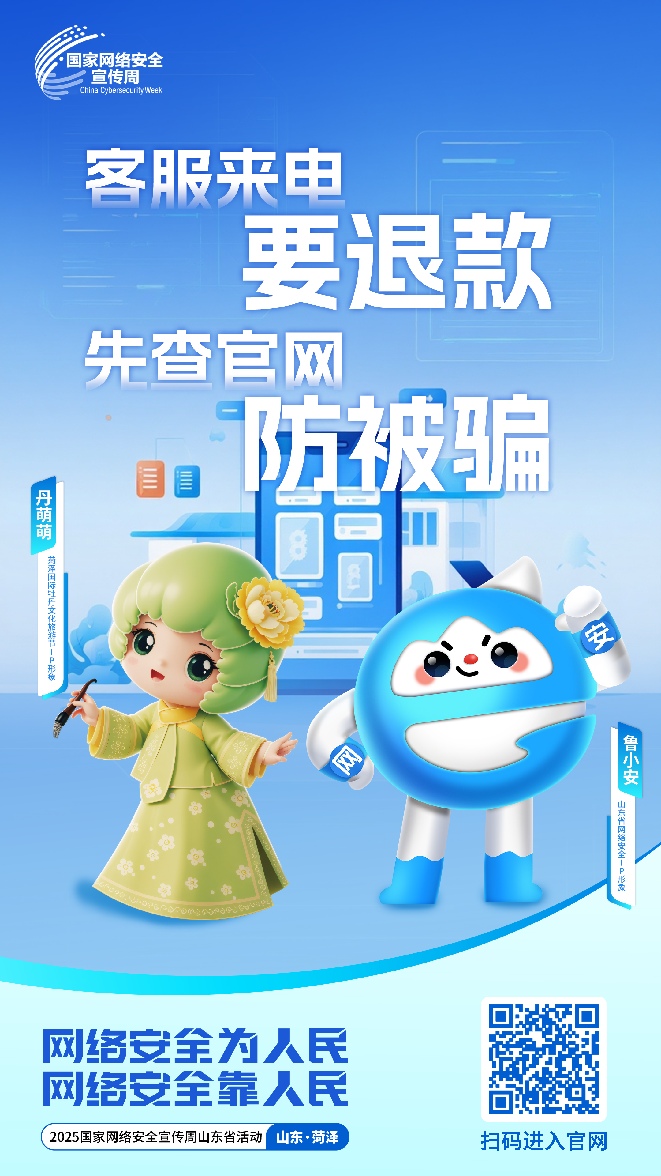 网络安全为人民,网络安全靠人民。2025年国家网络安全宣传周山东省活动将于9月15日在菏泽启动。“鲁小安”携手“丹萌萌”给你最实用的“避坑”攻略。