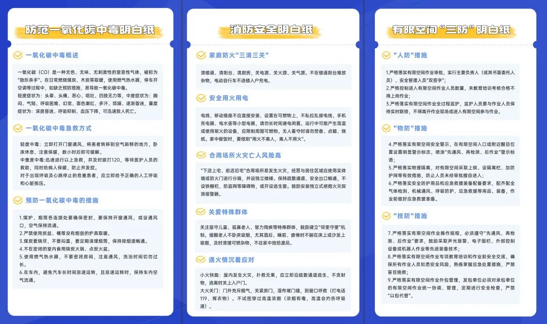 清楼道、清阳台、清厨房,关电源、关火源、关气源。不在楼道阳台堆放杂物,电动自行车不进楼入户充电。