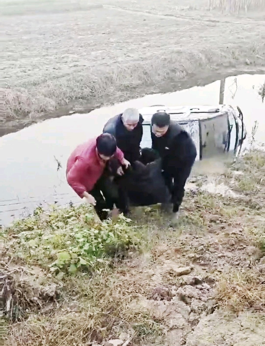 “我们村的村民朱金花满脸焦急地冲向河边,我心中一紧,想着肯定出事了,立即停车跑过去查看。”崔利营回忆说,走到河边他看到,河沟中一辆电动三轮车侧翻在水中,车身大半被河水浸泡,车内一名老人被困动弹不得。岸边两位老人急得连声呼喊,却因年迈无力施救,现场情况十分危急。