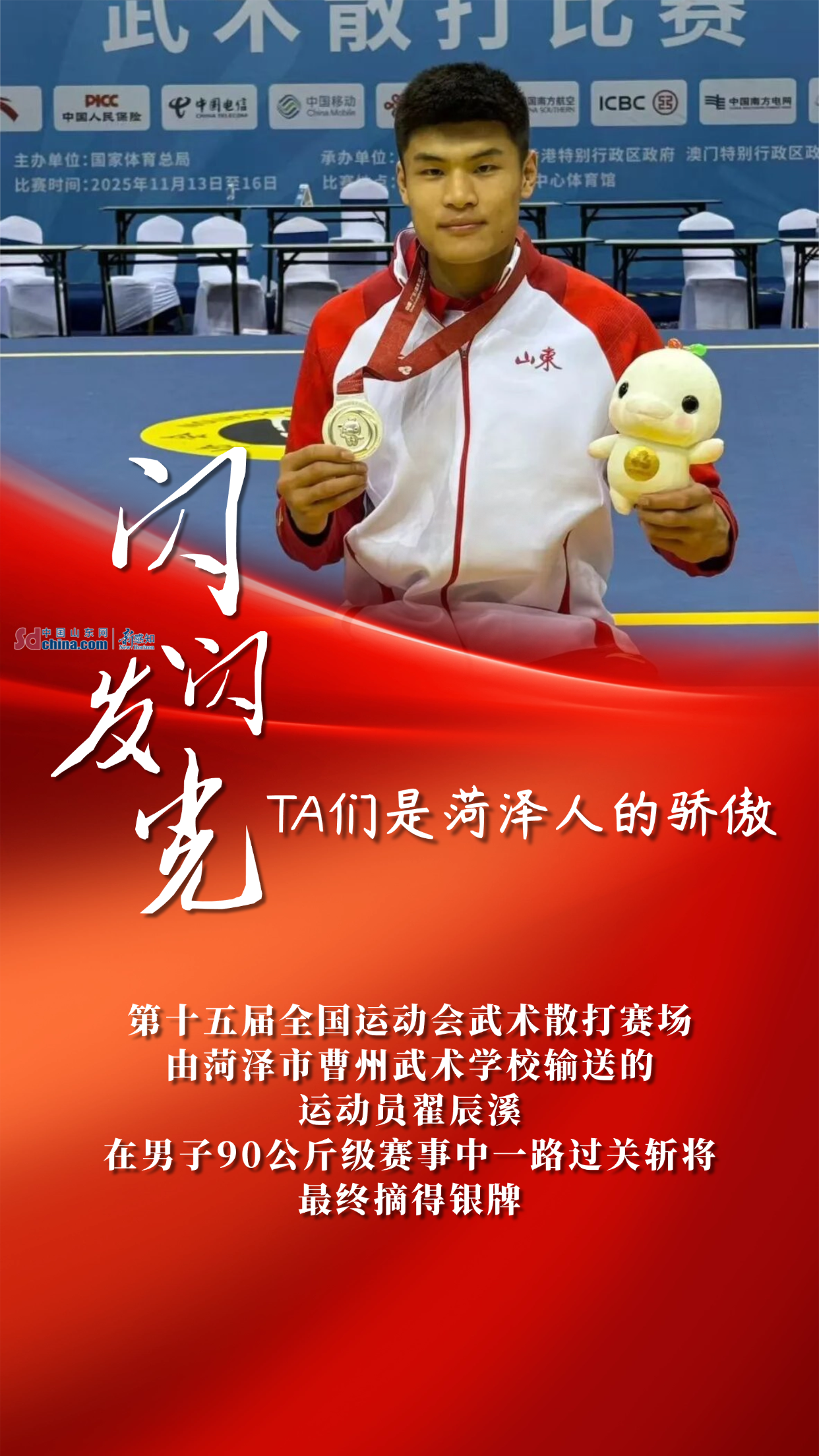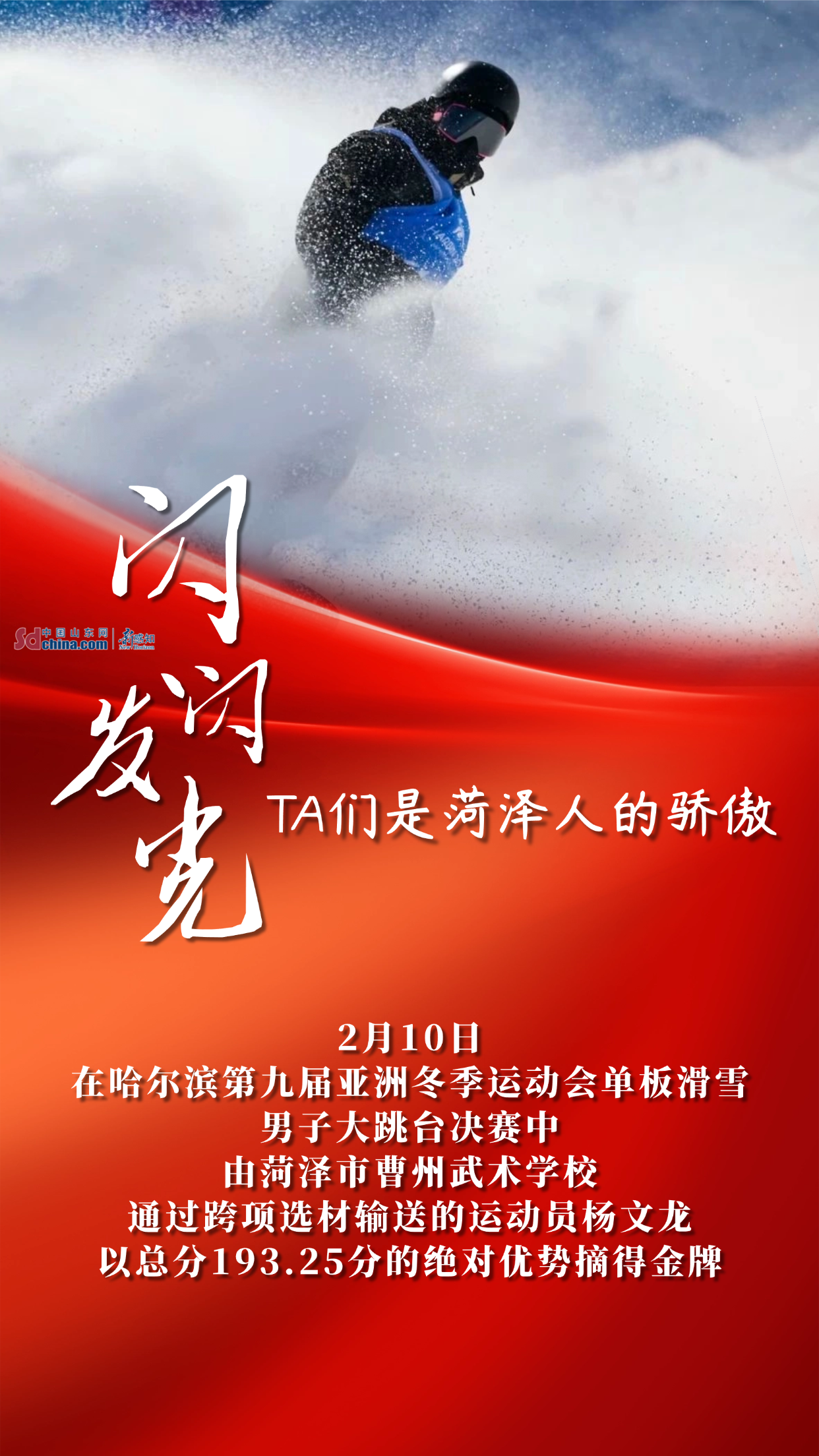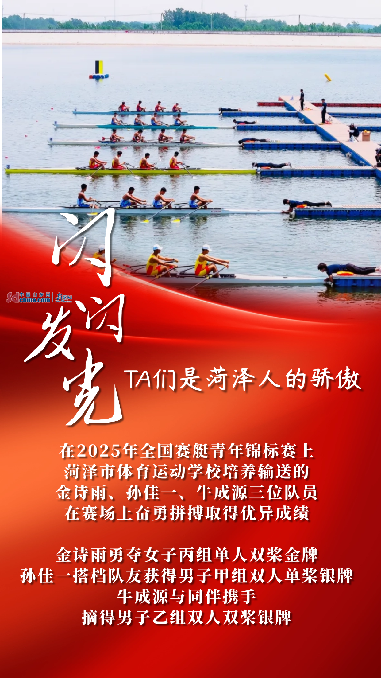 从哈尔滨亚冬会自由式滑雪、单板滑雪夺金,到第十五届全国运动会武术套路、摔跤、皮划艇、足球、武术散打等多项目摘金夺银;从残疾人举重世锦赛两破世界纪录,到全国赛艇青年锦标赛勇创优异战绩……菏泽健儿用一枚枚奖牌、一次次突破,在竞技赛场写下属于菏泽的拼搏故事。