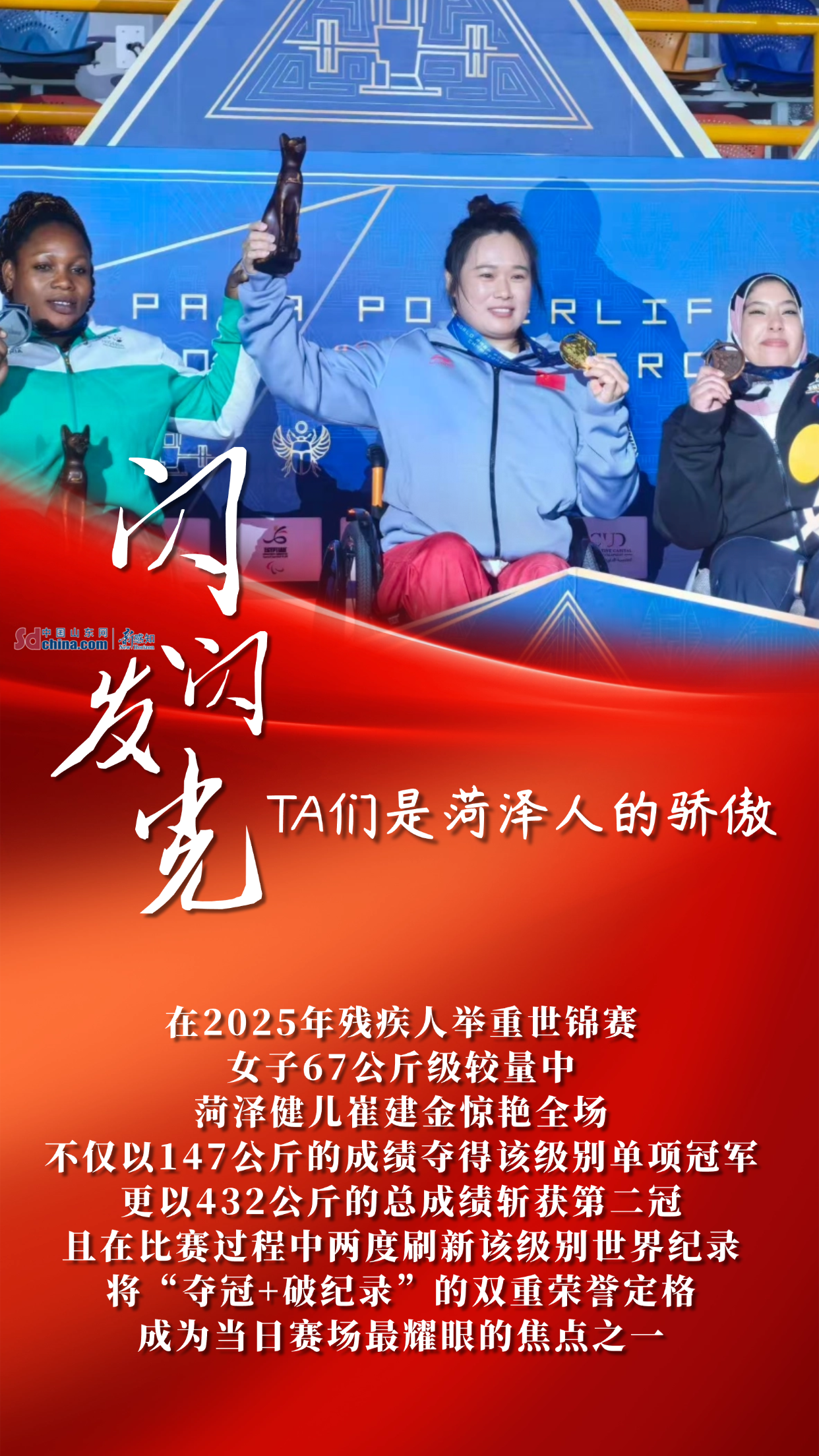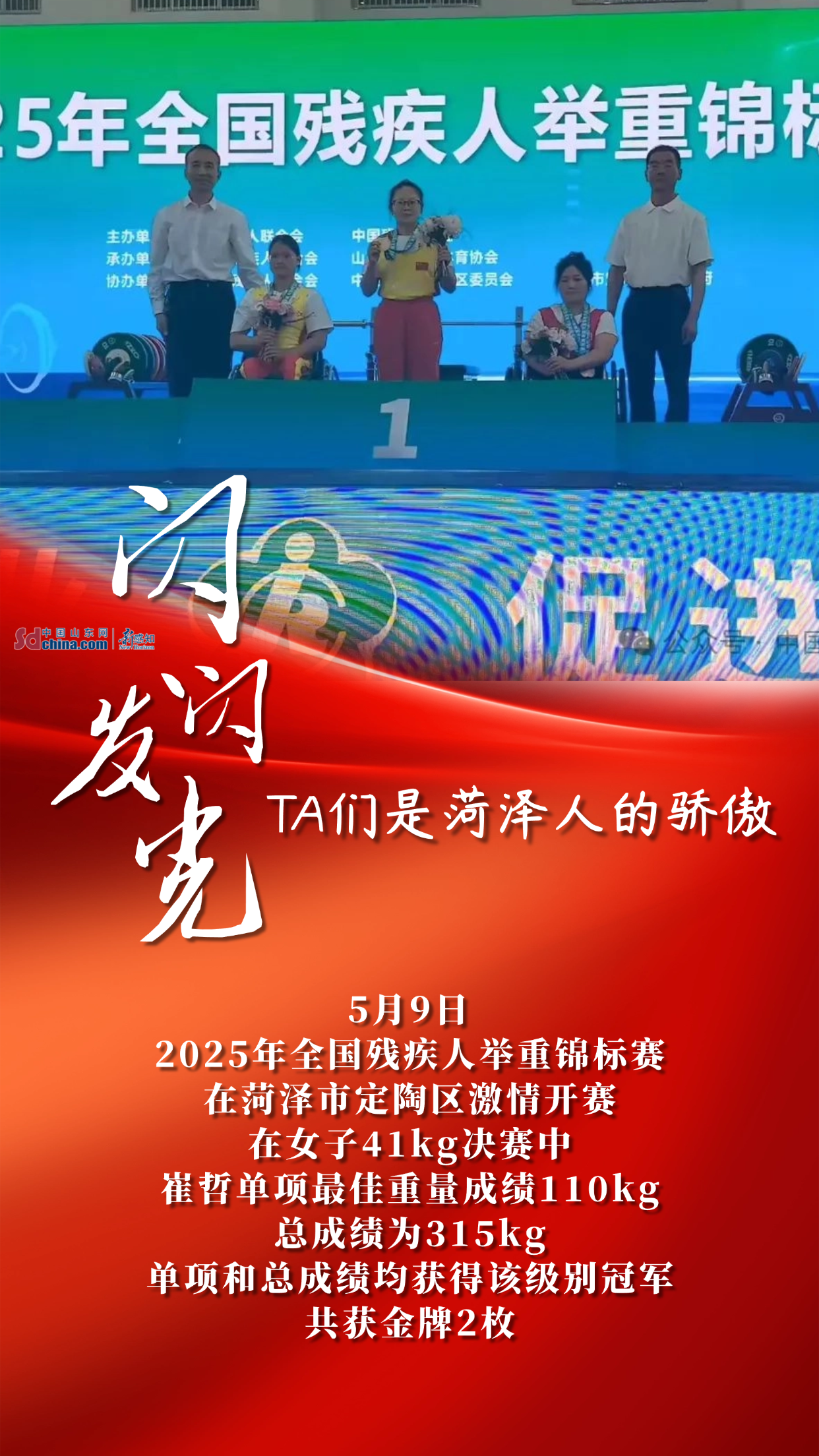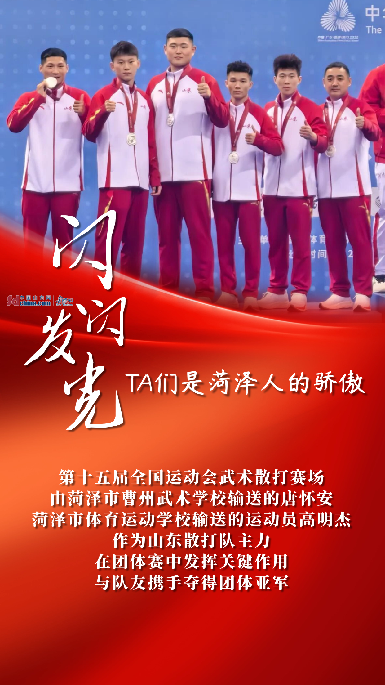 从哈尔滨亚冬会自由式滑雪、单板滑雪夺金,到第十五届全国运动会武术套路、摔跤、皮划艇、足球、武术散打等多项目摘金夺银;从残疾人举重世锦赛两破世界纪录,到全国赛艇青年锦标赛勇创优异战绩……菏泽健儿用一枚枚奖牌、一次次突破,在竞技赛场写下属于菏泽的拼搏故事。