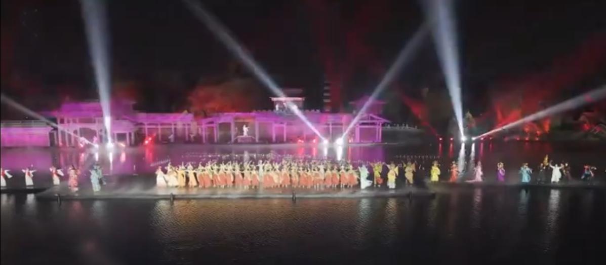 白日的雅致与夜晚的璀璨形成双重暴击。当暮色降临,“夜赏曹州・入梦牡丹”光影项目拉开帷幕:700米主干道被激光勾勒出金色脉络,300亩花田在雾效中若隐若现,“一灯一故事,一步一千年”的叙事灯光体系,将牡丹传说、黄河文化与非遗技艺串联成流动的诗篇。